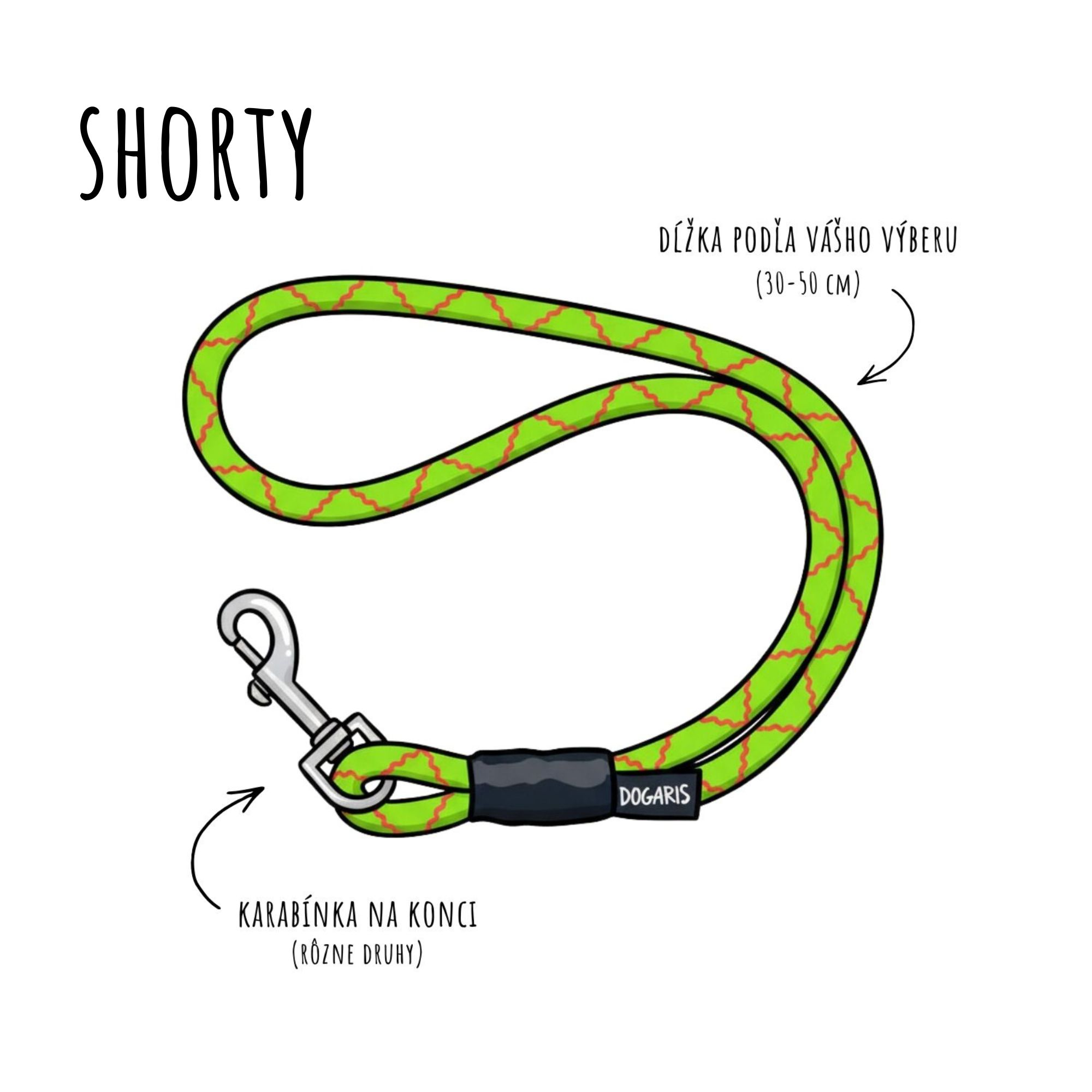 Lanové vodítko SHORTY - zelené a žlté farby