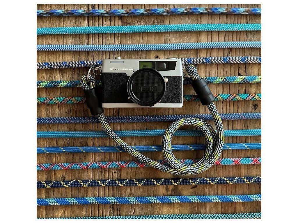 Popruh na fotoaparát (na krk/zápästie) - modré a čierne farby